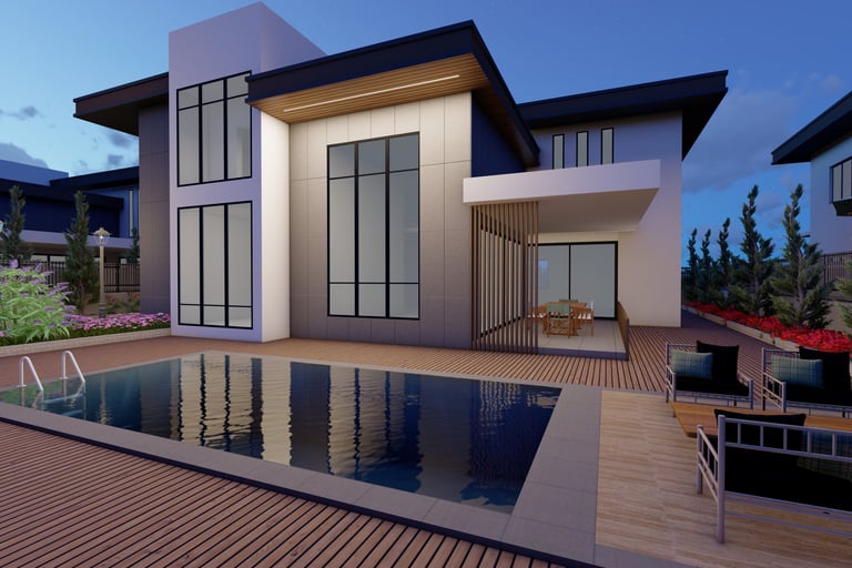 Modern villa cephe tasarımı, estetik bir görünüm sunmanın ötesinde, kullanıcıya konforlu ve nitelikli bir yaşam alanı vadeder. Doğal ışıkla kurulan güçlü ilişki, mekânsal ferahlığı artırırken cephedeki sade kompozisyon yapının zamansız bir mimari kimlik kazanmasını sağlar. Her detayıyla çağdaş yaşamı destekleyen bu cephe kurgusu, yaşam kalitesini yükselten bütüncül bir mimari deneyim sunacak şekilde tasarlanmıştır.